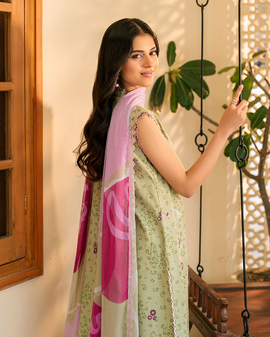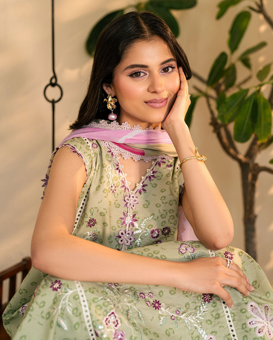 Sequence & chikan embroidered printed lawn front