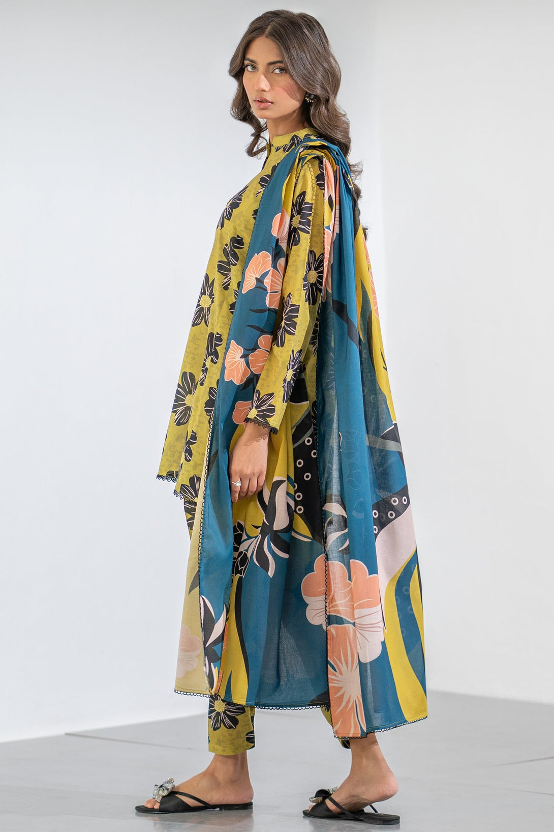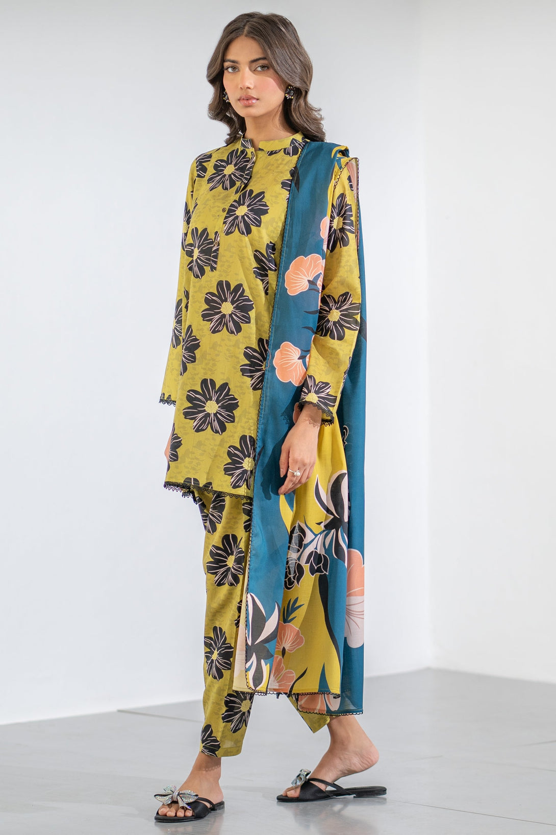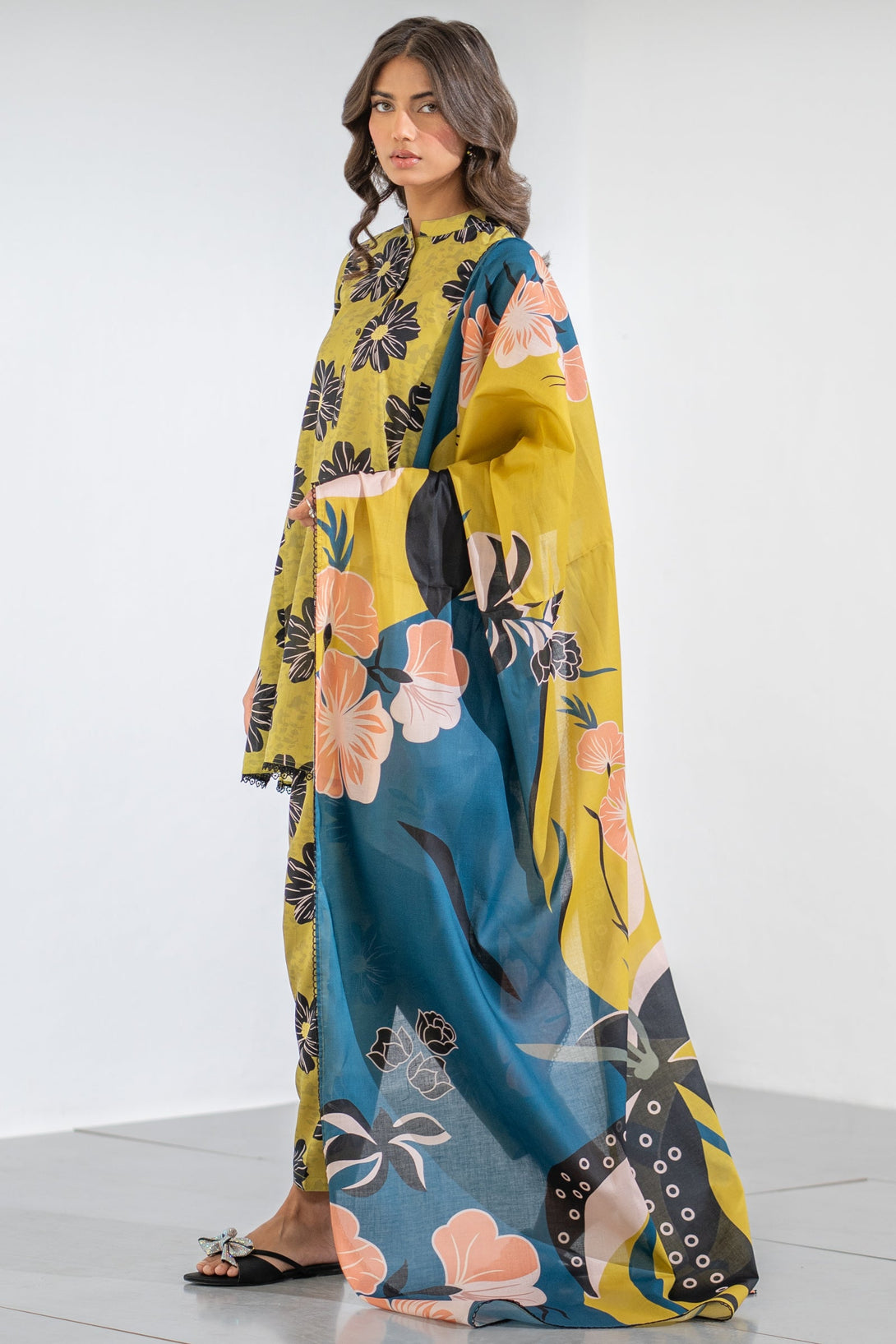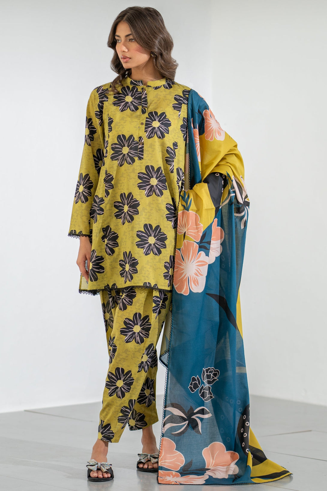 Mesmerize yourself with this beautifully Olive green digital print unstitched three-piece