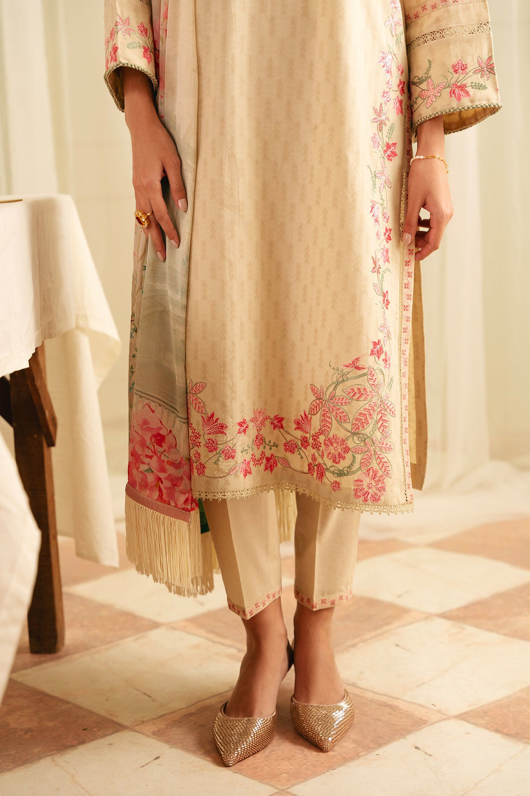 Add-On: Dyed Embroided border Front, Sleeves & Trouser (Jacquard)