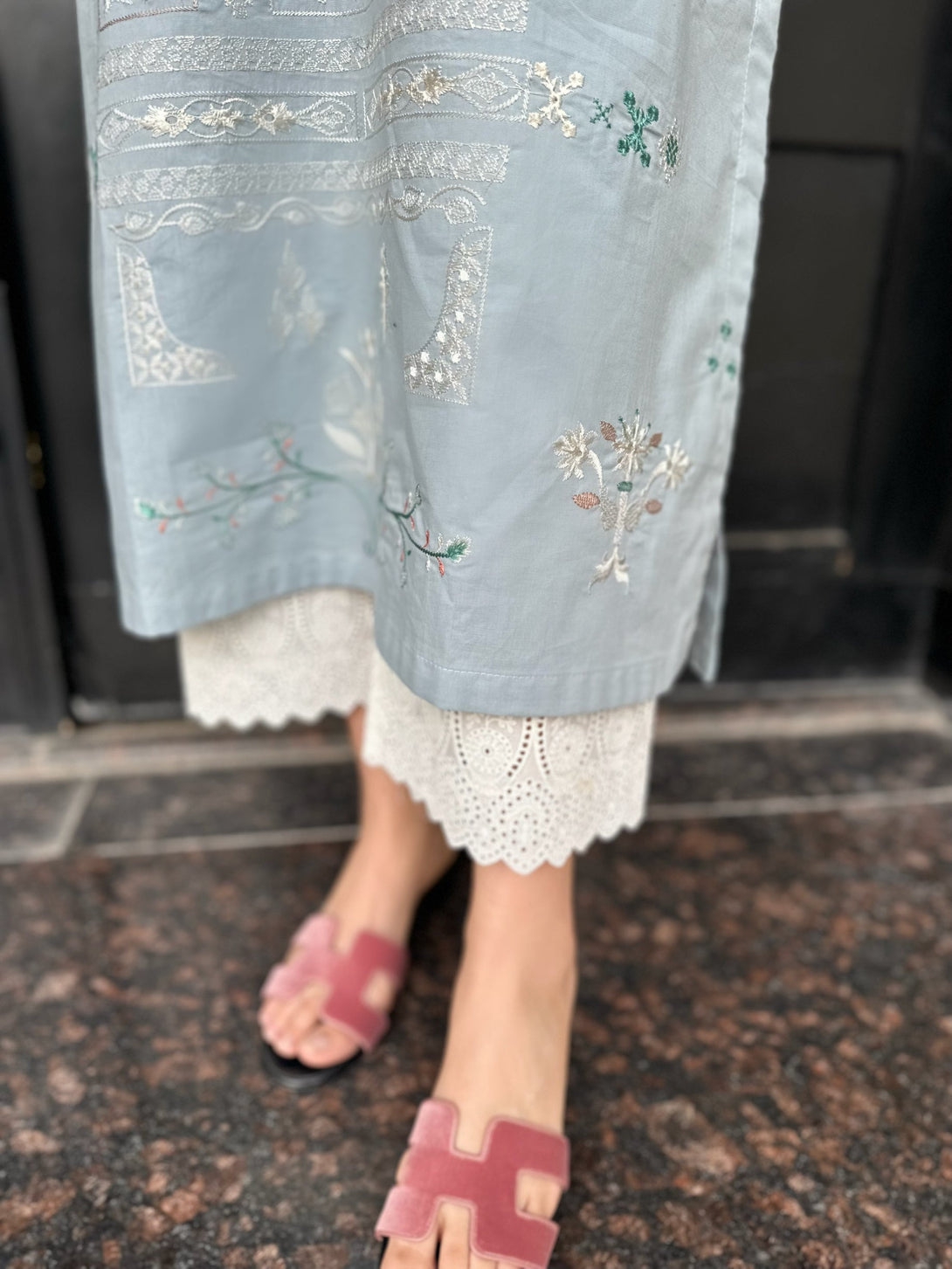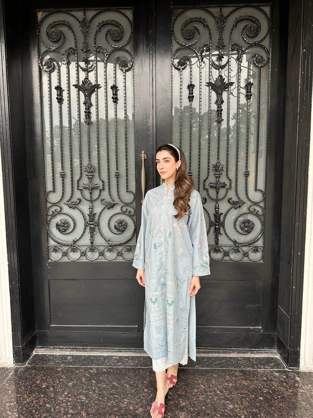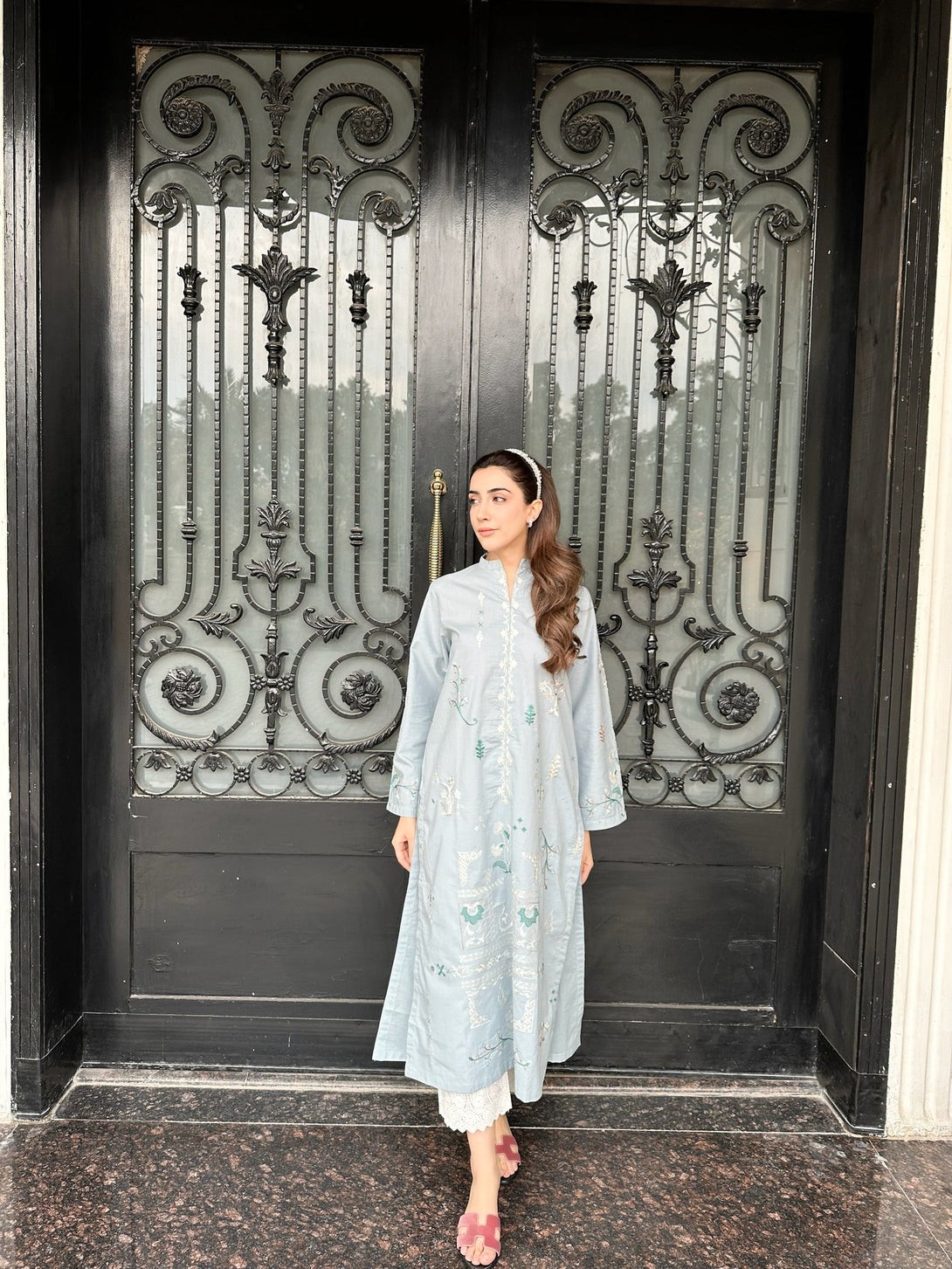 Carnation - Light Sky Blue Embroidered Kurta
