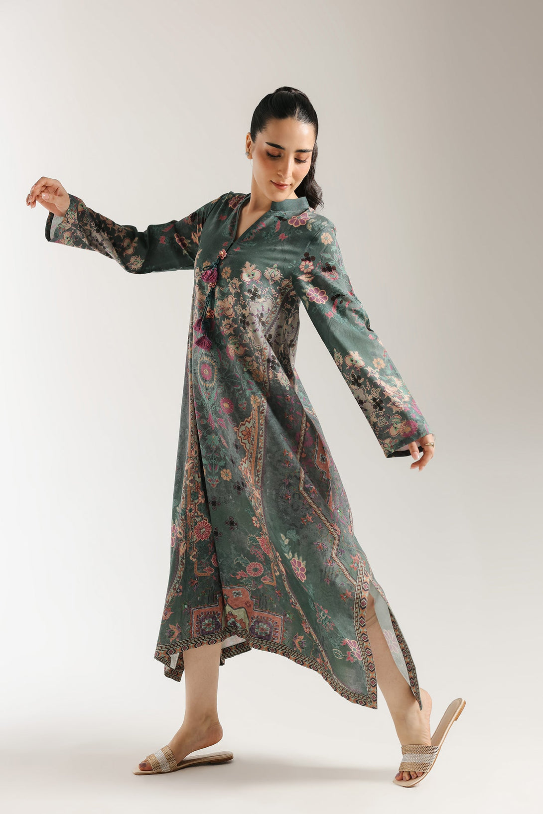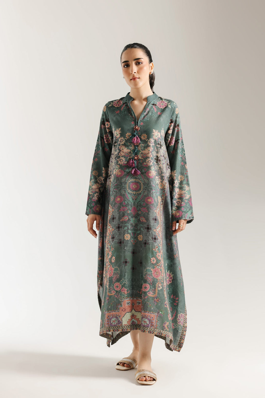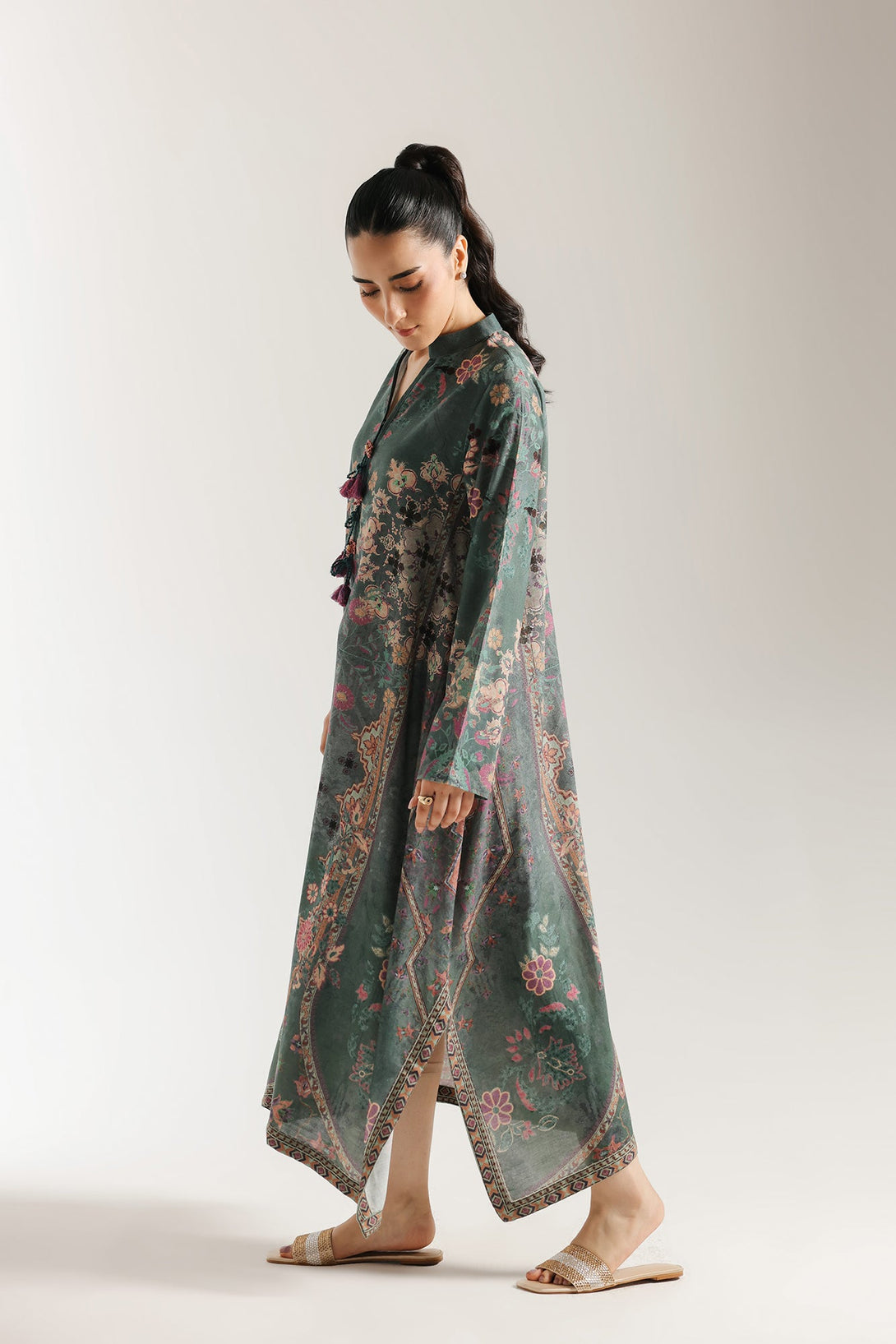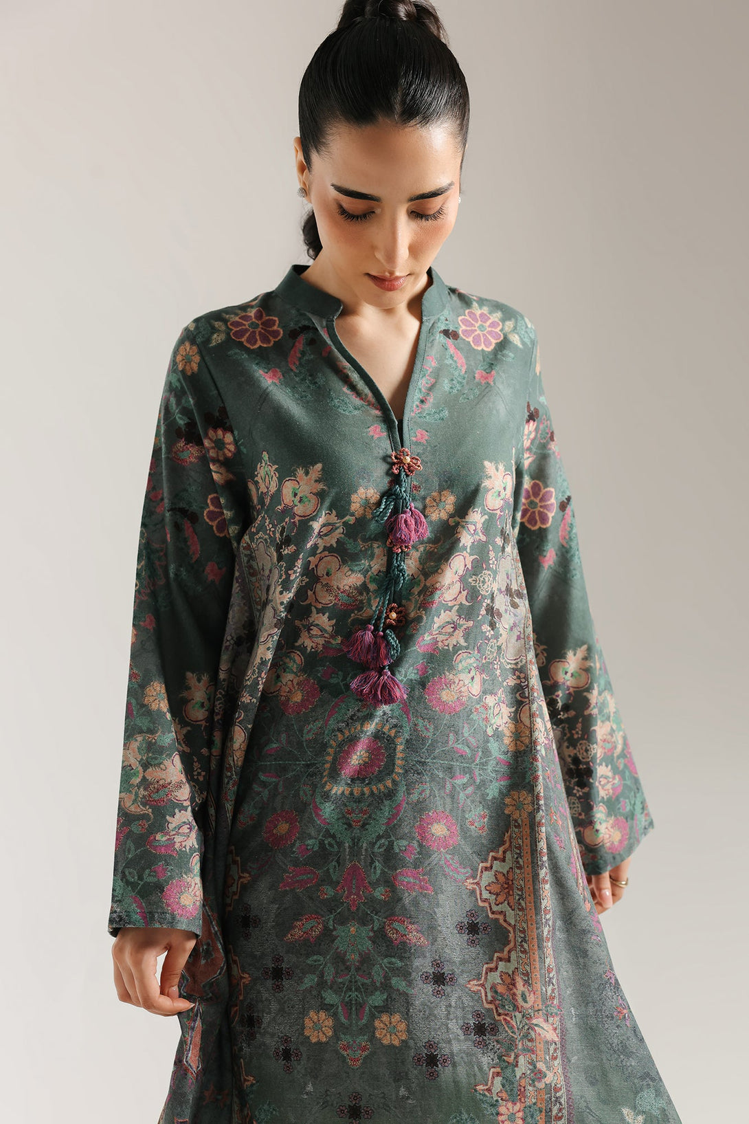 Indulge in a tapestry of lush hues and delicate patterns. This enchanting, embroidered shirt features a rich, deep teal base adorned with an exquisite all-over floral print in shades of dusty rose, sage green, and hints of plum. The flowing silhouette is gracefully complemented by a tassel-detailed neckline, adding a touch of sophisticated charm. This shirt is a captivating blend of bohemian elegance and timeless artistry, perfect for a standout look.