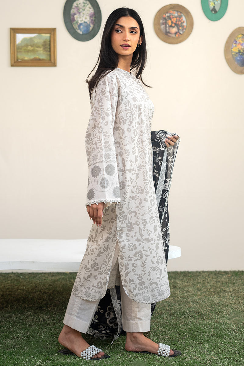 - This CORAL WHISPER-3PC PRINTED LAWN SUIT features a printed lawn shirt that will add a touch of elegance to your wardrobe. The dyed cambric trouser offers a comfortable fit, while the lawn printed dupatta adds a stylish finishing touch. Perfect for any occasion, this suit is a must-have for any fashion savvy individual.
