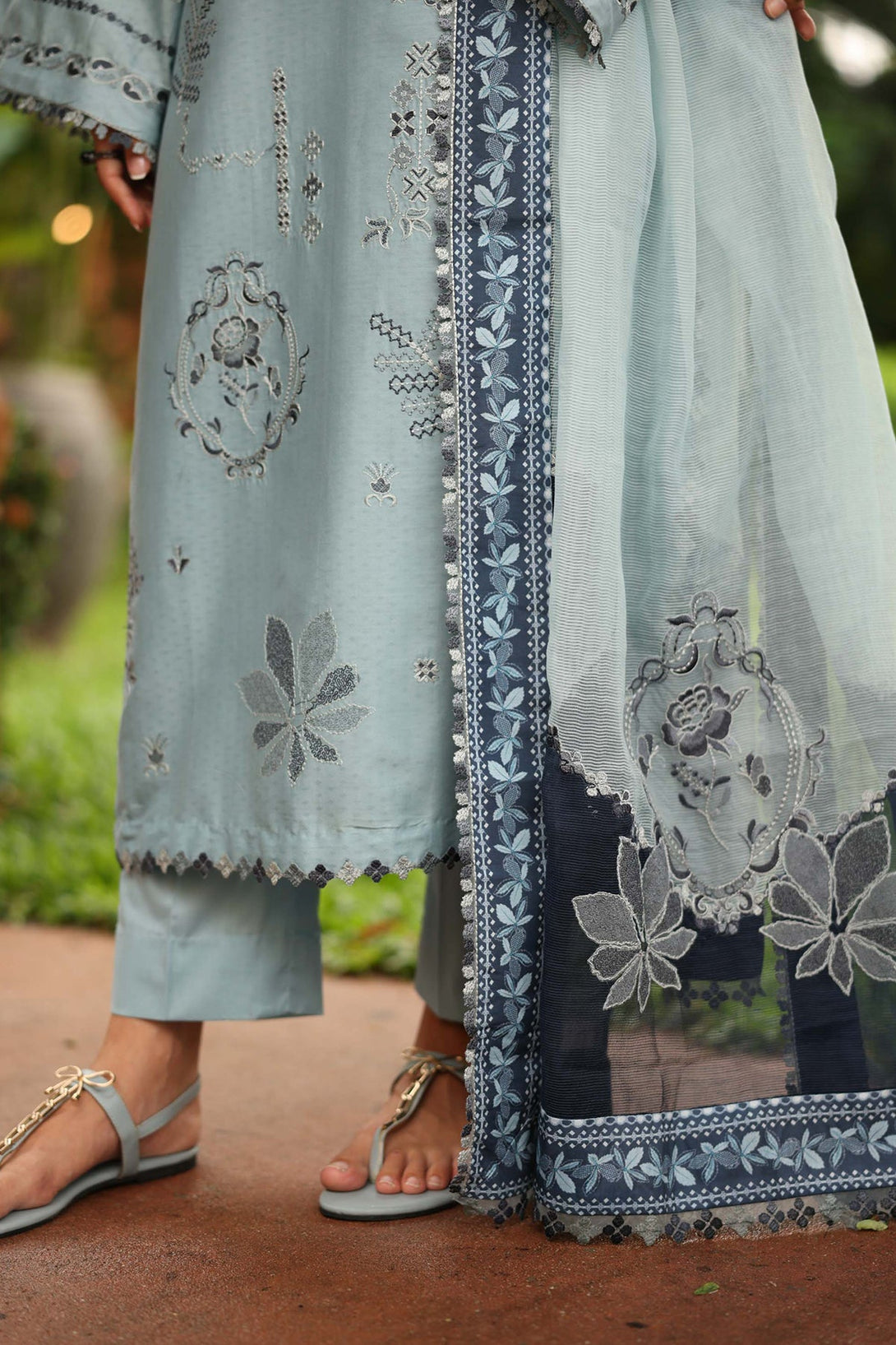 Embroidered organza sleeves & dupatta border (8 yard)