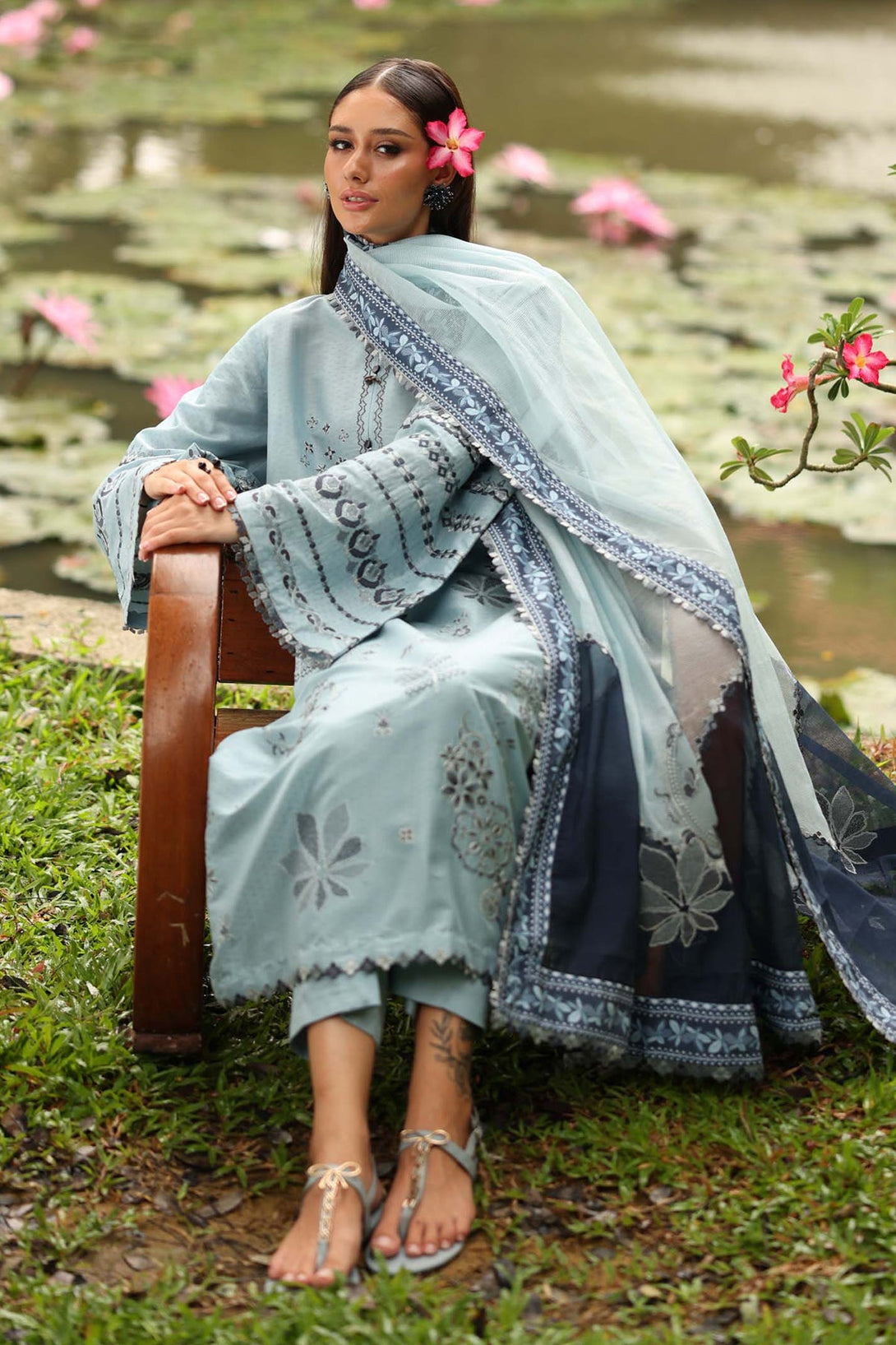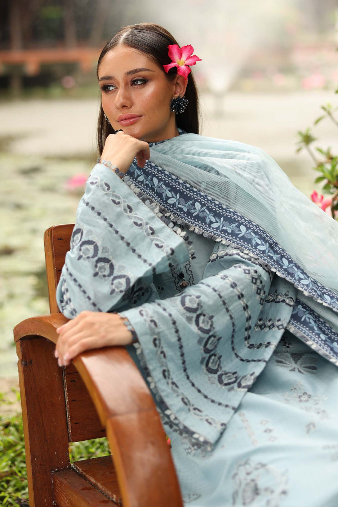 Embroidered organza front & dupatta border (6.5 yard)