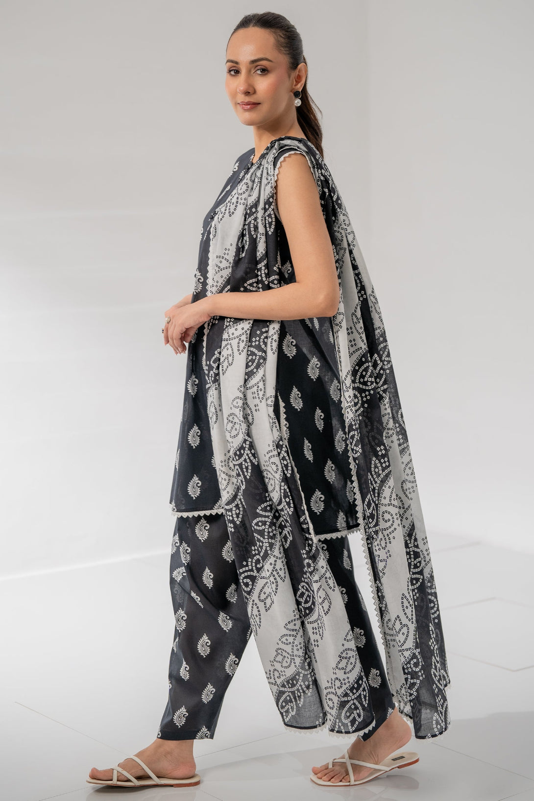 This black colored lawn three-piece unstitched with beautiful digital print is perfect to have this season.
