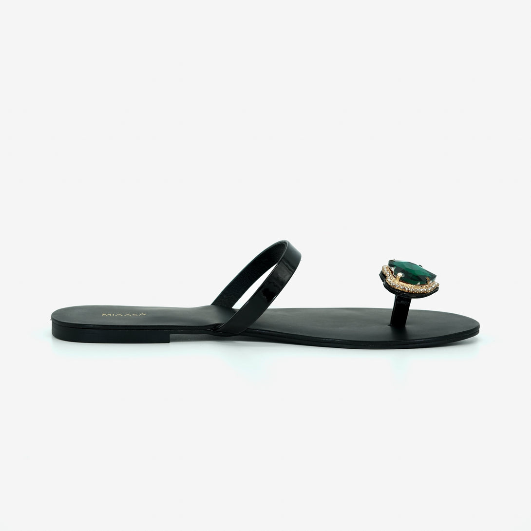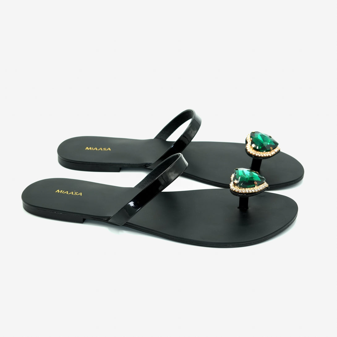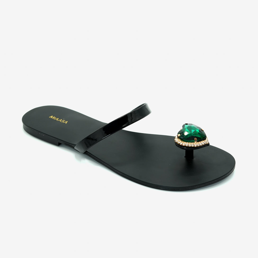 Nilay' is minimal, fresh, and full of shine. Set on a tan insole, it features a single iridescent PVC strap and a bold blue heart stone framed with micro crystals at the toe. The barely-there look keeps things clean while the pop of sparkle brings just the right amount of drama. '