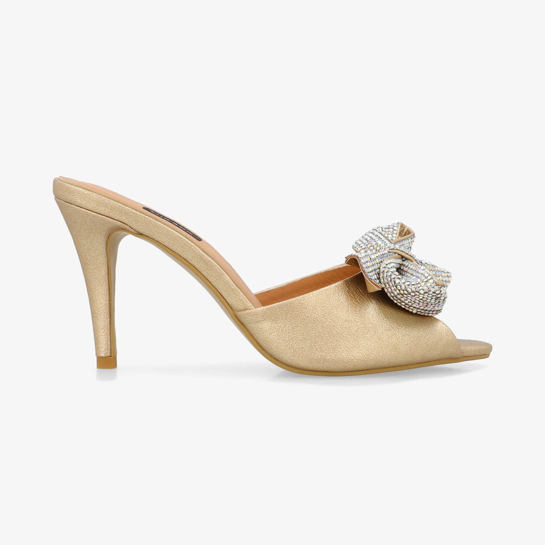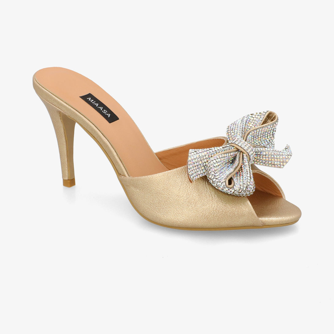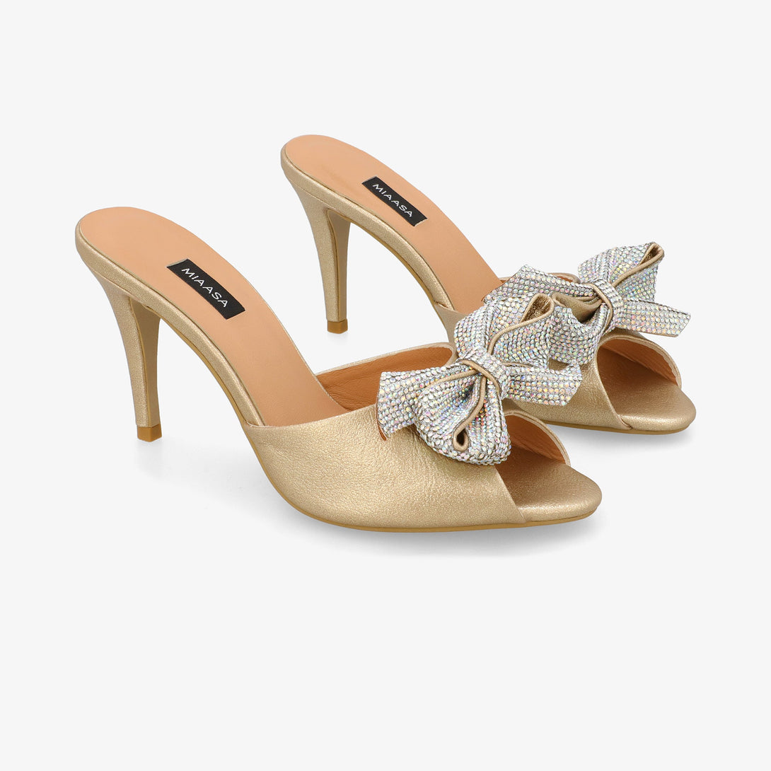 Our bestselling 'Boby' heel makes its debut in champagne gold. Studded with micro crystals, this sandal is sure to make any ensemble dazzle. Pair it with wedding formals or party attire for your evening out.