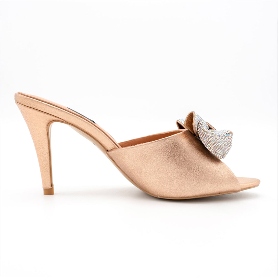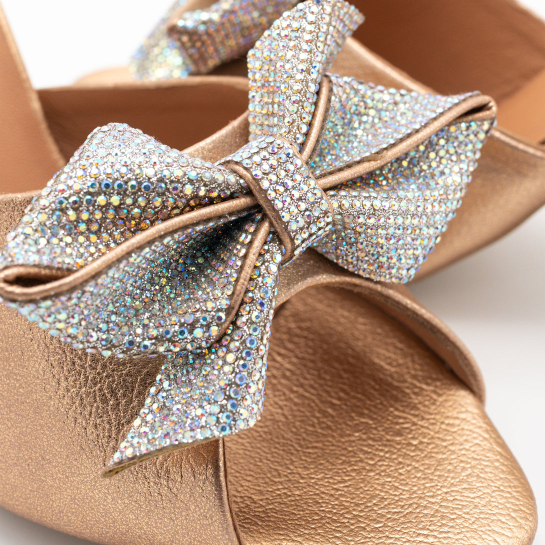 Our bestselling 'Boby' heel makes its debut in champagne gold. Studded with micro crystals, this sandal is sure to make any ensemble dazzle. Pair it with wedding formals or party attire for your evening out.