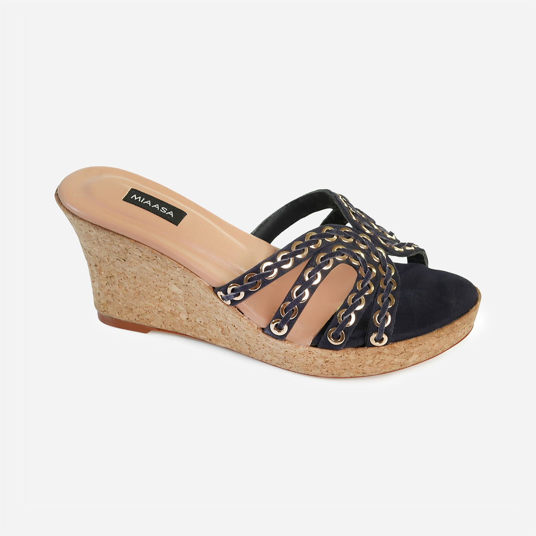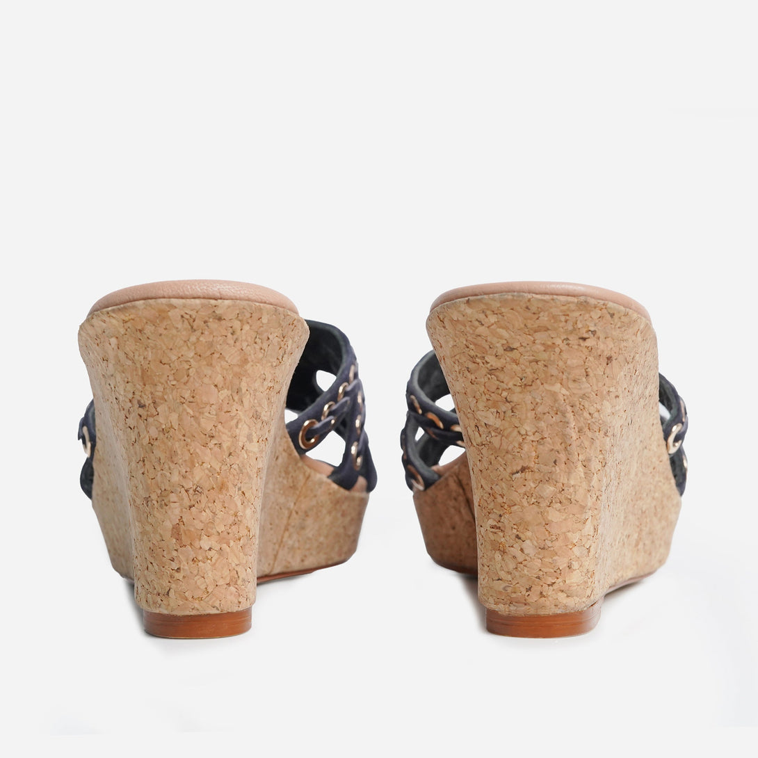 The 'Zee Eyelet' wedge features our signature scallop pattern, adorned with eyelets and handwoven details. This lightweight yet striking wedge promises to be your go-to sandal, with a 45mm heel offering both comfort and style. A true wardrobe icon for your summer soirées.