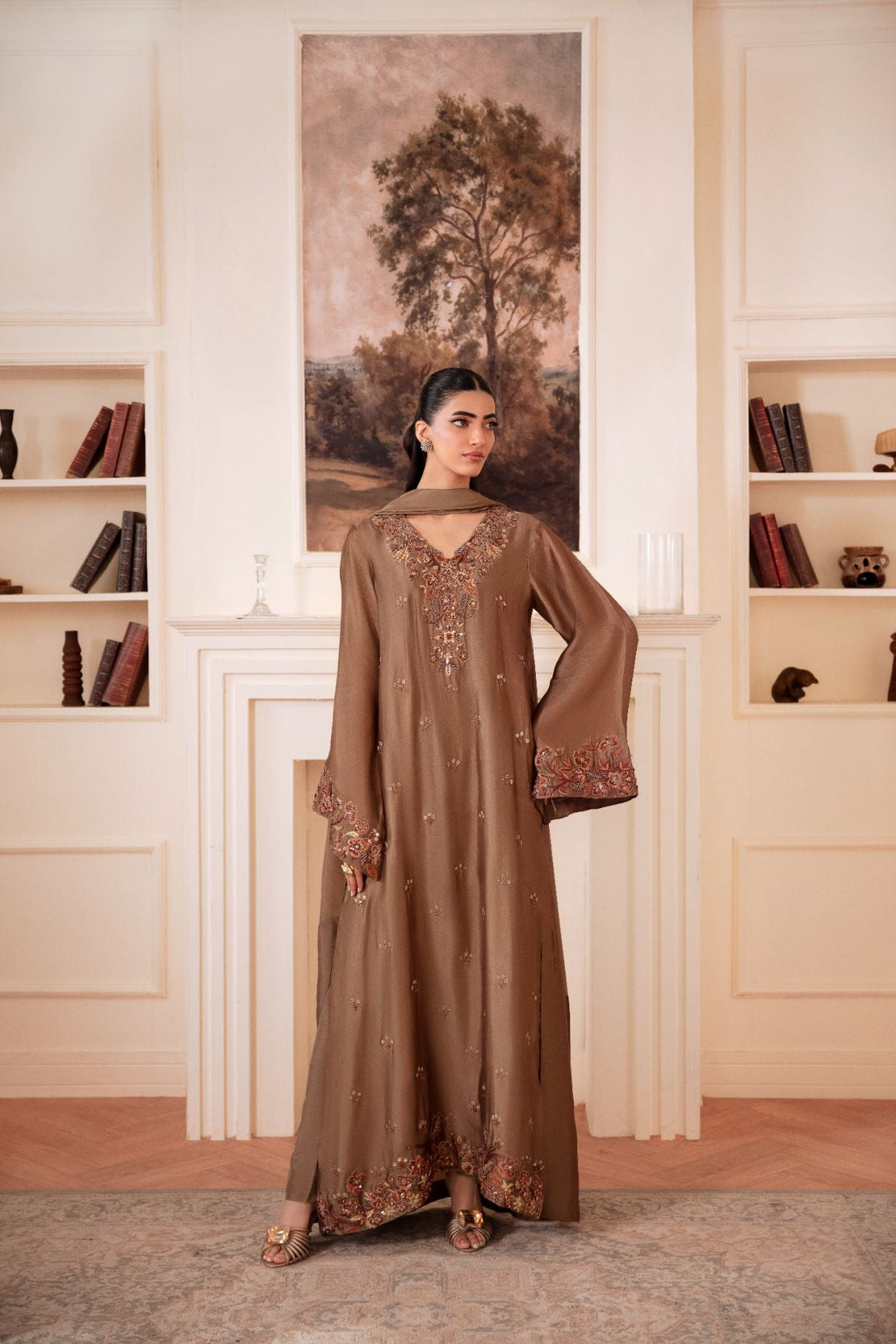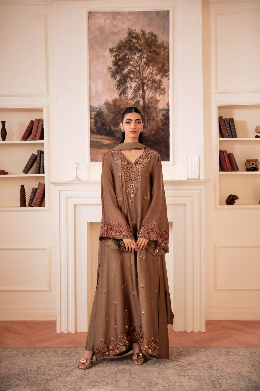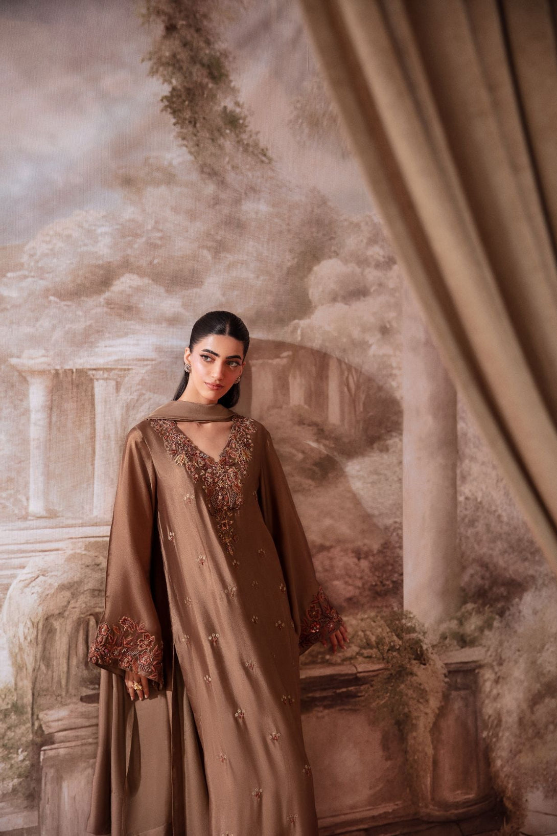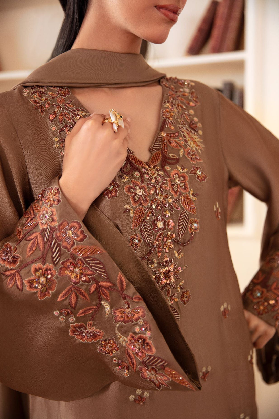 Hand embroidered base with embellishment of crystals, Katdana and sequins in monotones of Base color.