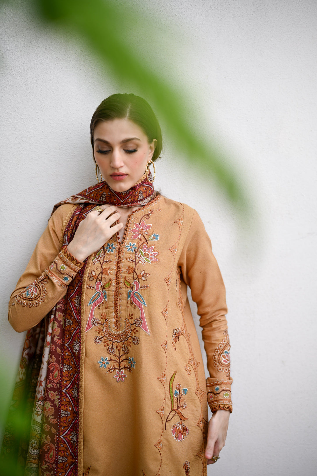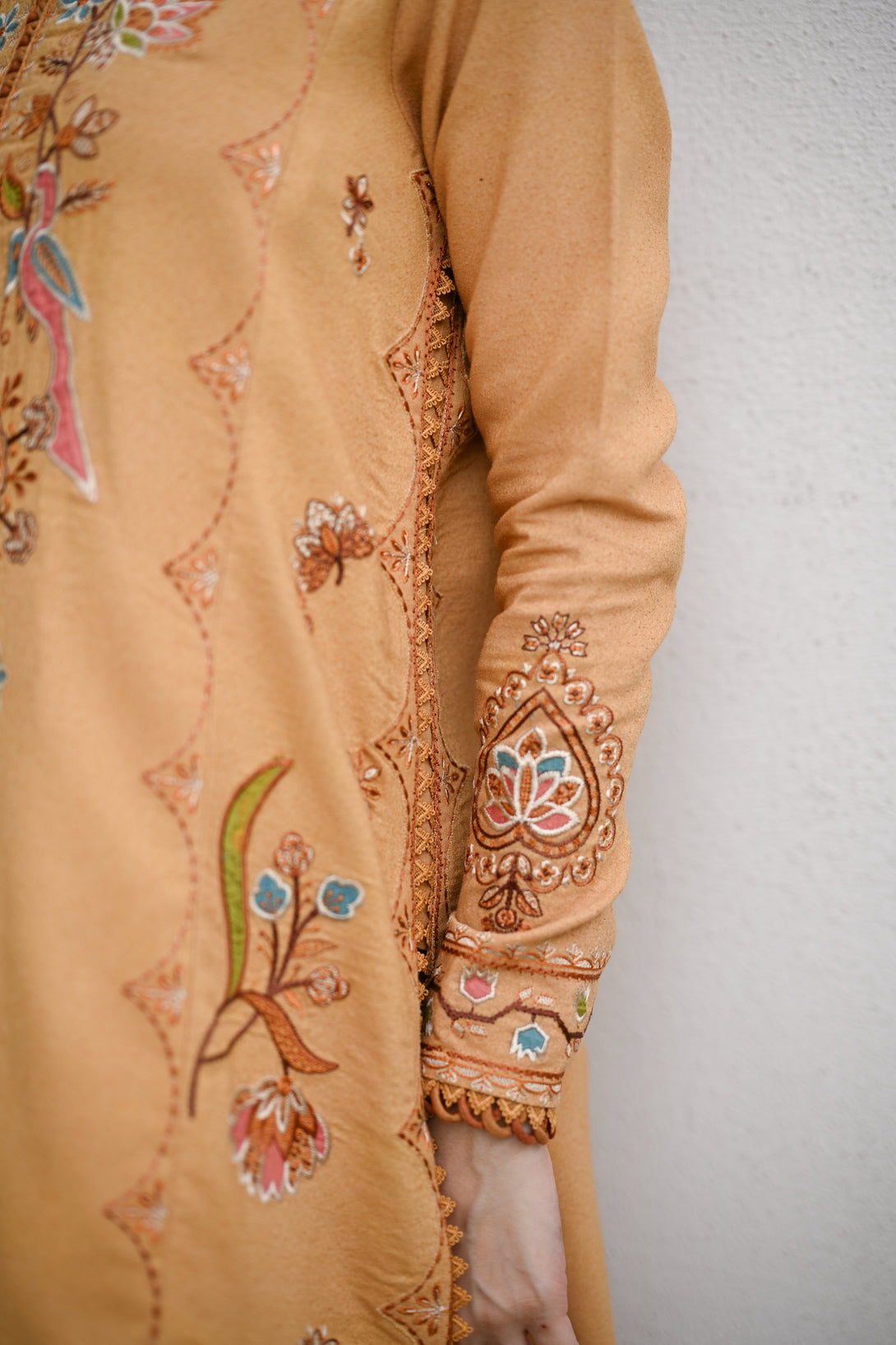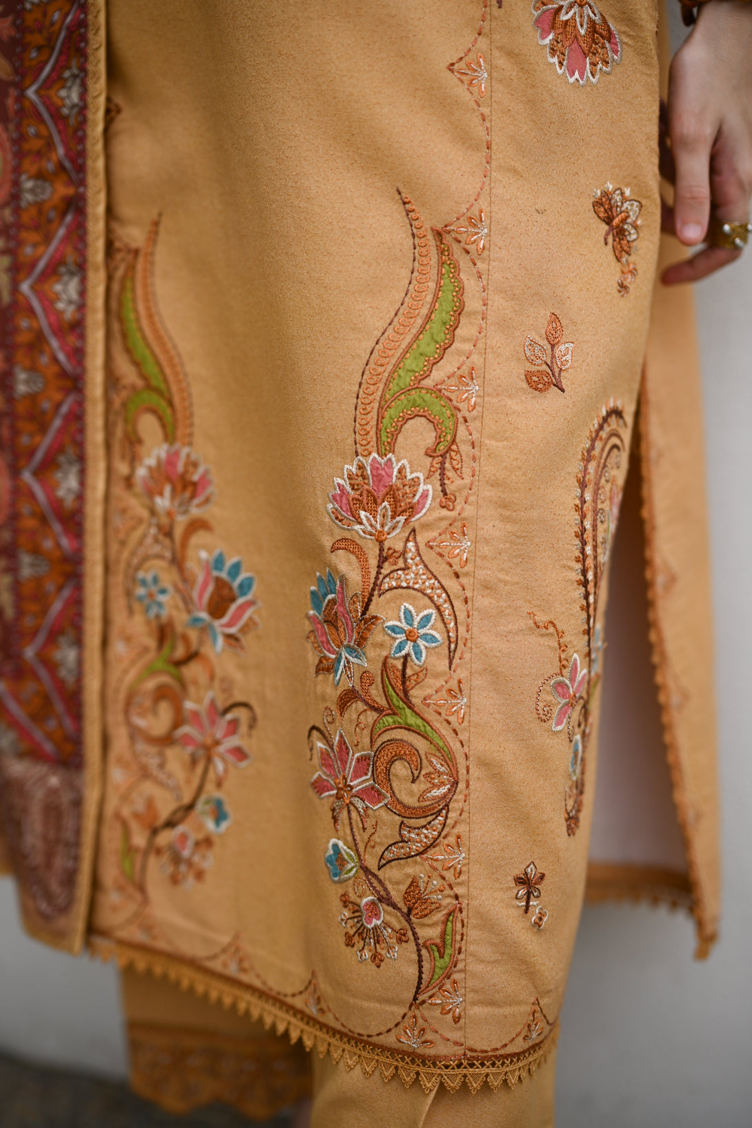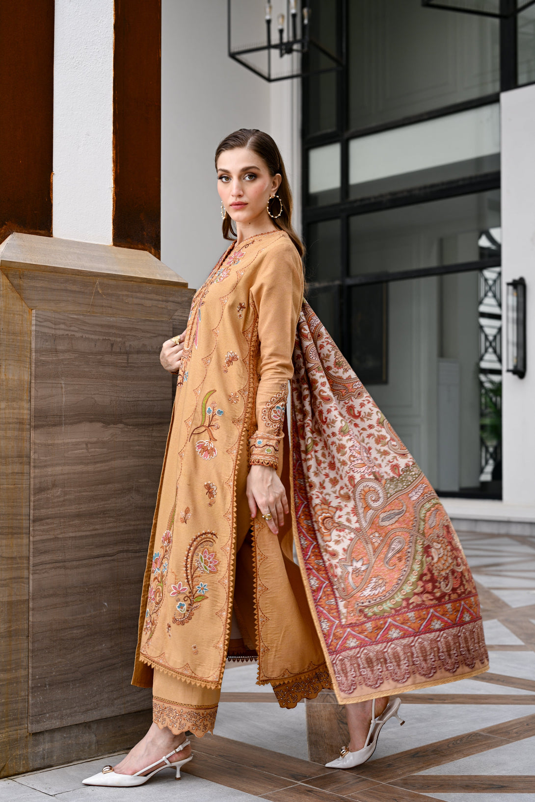 MUSTARD LUXURY EMBROIDERED KARANDI SET (NEL-25631)