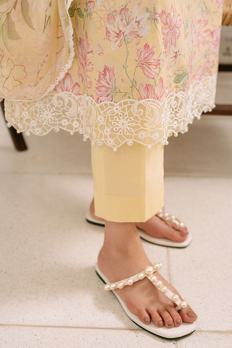 - This Lilly Garden 3PC Printed Cambric Suit features a finely printed lawn shirt with an embroidered neckline and a 40" embroidered patti, paired with a cambric dyed trouser for comfort and durability. The ensemble is completed with a silk printed dupatta, offering a blend of elegance and breathable fabric ideal for warm weather. Perfect for those seeking a sophisticated yet comfortable traditional outfit.