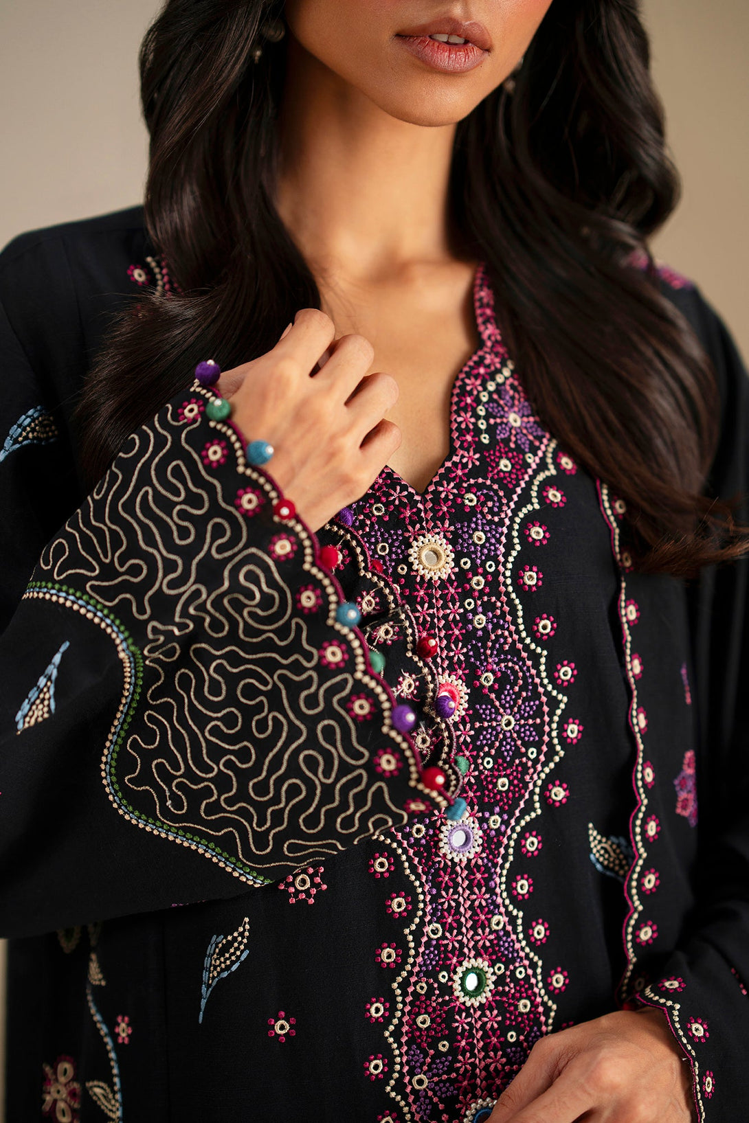 -Embroidered Raw Silk Hem + Sleeve Border-1 1 Pc