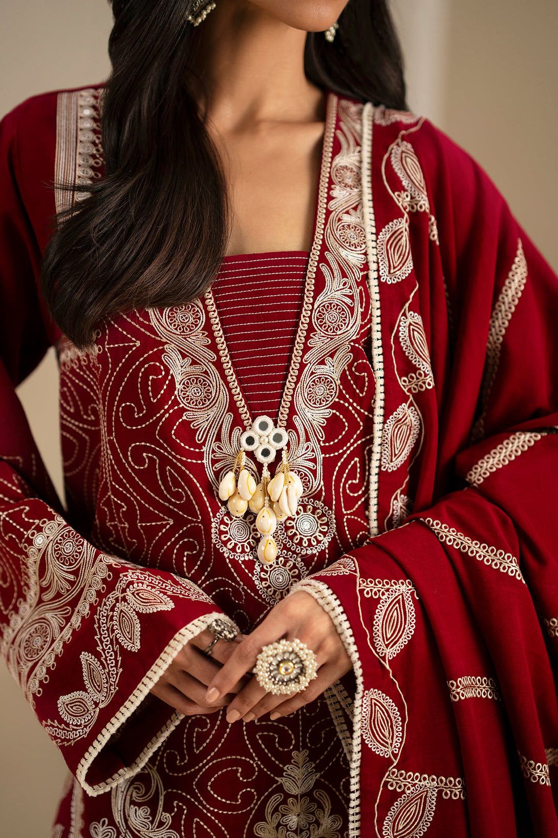 -Embroidered Dyed L/W Cotton SLB Dupatta Pallu (L+R) 2 pcs