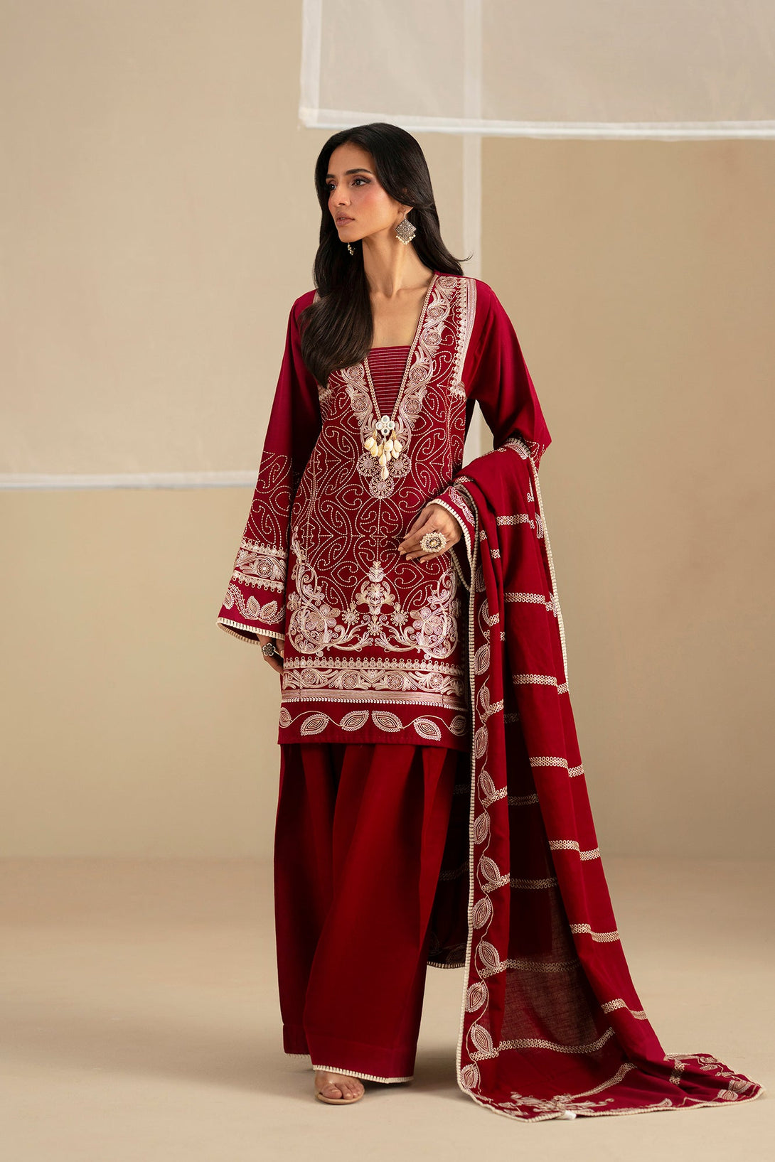 -Embroidered Dyed L/W Cotton SLB Dupatta 2.3 Mtr