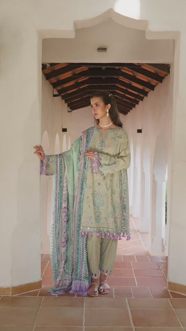 A delicate harmony of sage, lilac, and soft mint — this unstitched lawn ensemble is elegance in its most graceful form.