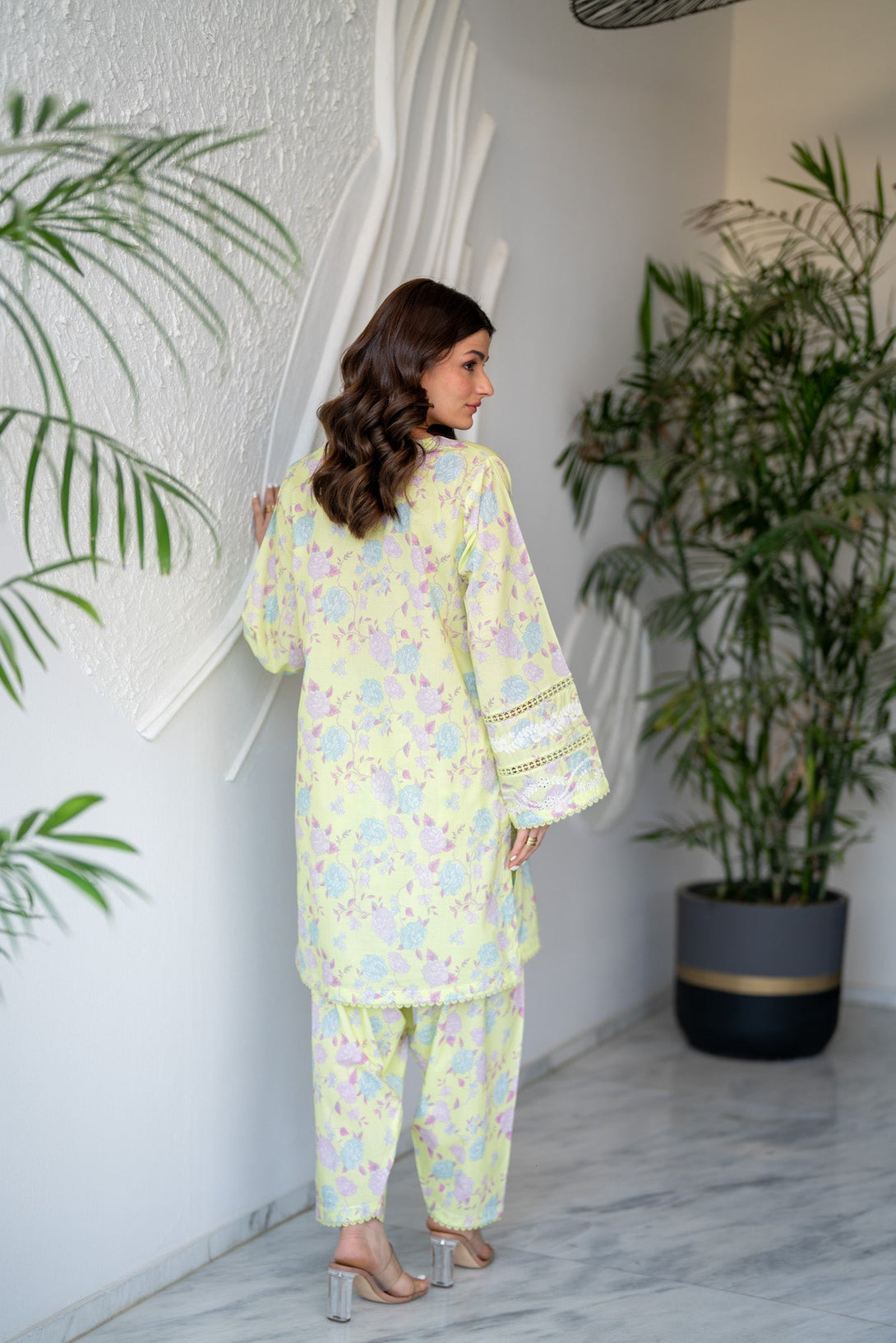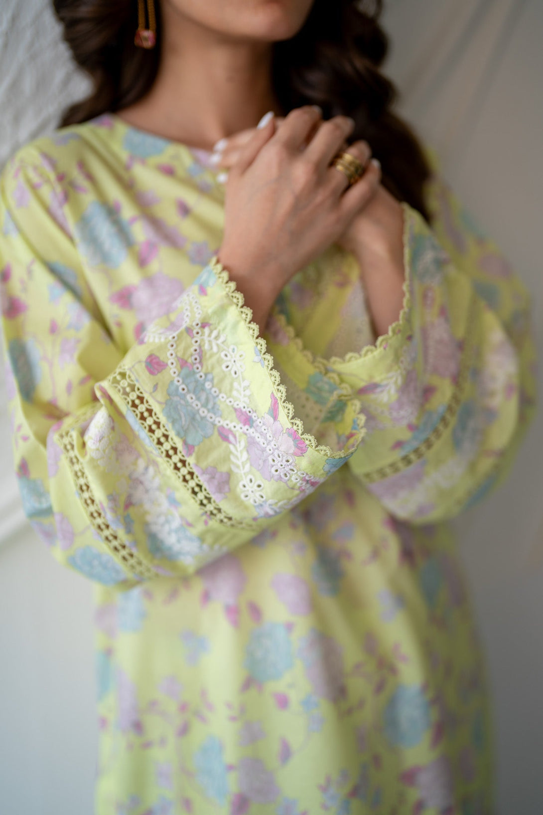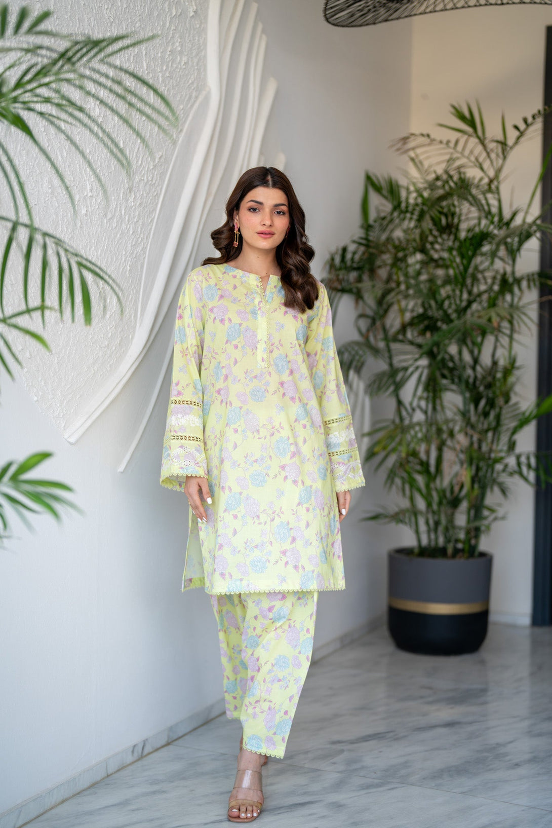 This two-piece set is crafted with a blend of traditional elegance while maintaining a modern flair on sophisticated color. Embroidery on sleeves further elevates its style.