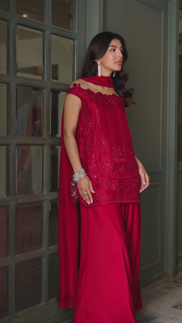 Striking, confident, and undeniably bold — Vrai is made for moments that demand attention. Drenched in a rich crimson red, this ensemble carries a powerful presence while staying refined through its tone-on-tone detailing.