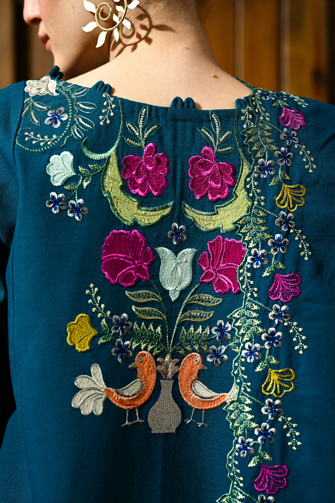 ZINC GREEN LASER CUTWORK LUXURY EMBROIDERED KARANDI SET (NEL-25637)