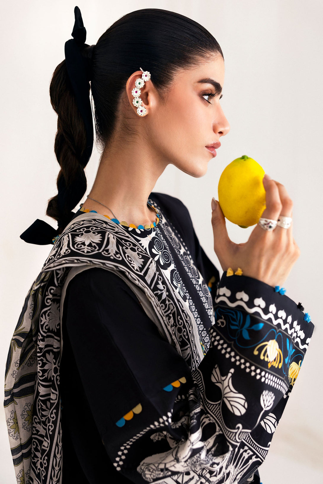 A pearl-white dupatta offsets the look, framed with blue and yellow accents and finished with tassels that add a playful sway. Paired with tonal trousers trimmed with a printed border, Liyana is a nod to history, reimagined with Zaha’s signature edge — bold, artful, and unapologetically effortless.